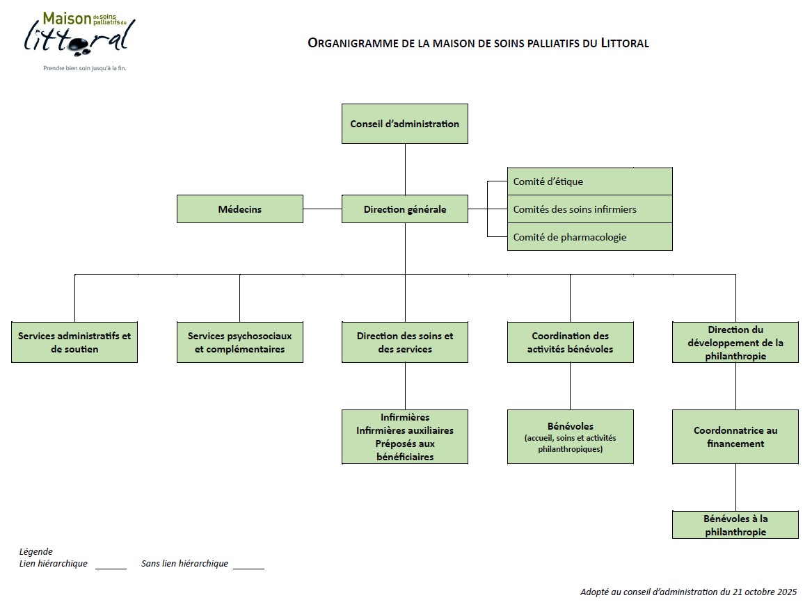 Le conseil d’administration et la direction de la Maison sont heureux et reconnaissants de pouvoir compter sur une équipe nombreuse de bénévoles faisant partie intégralement de l’équipe et constituant un maillon essentiel au bon fonctionnement de la Maison de soins palliatifs du Littoral.